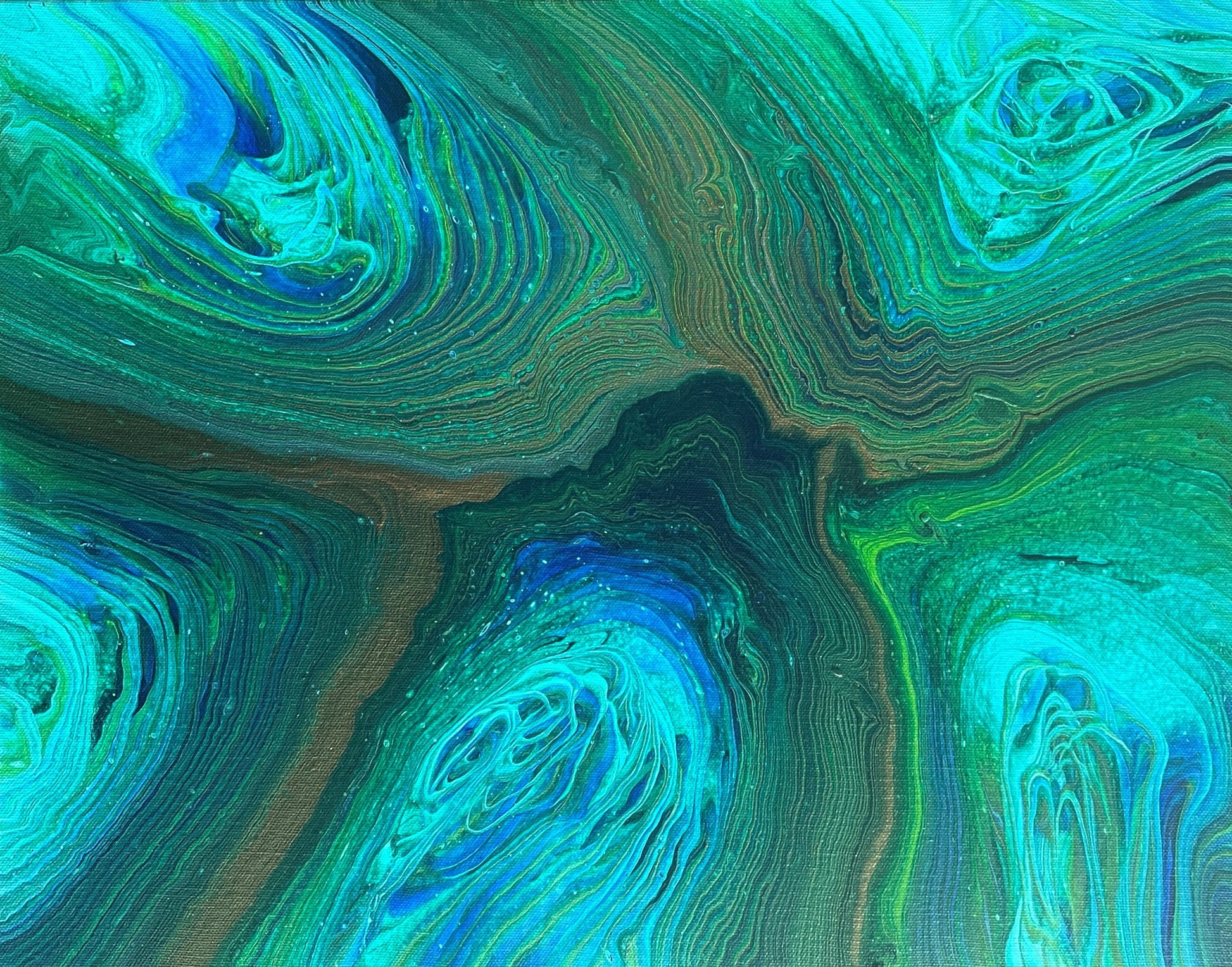 We didn't always live in a tropical paradise! My husband spent many years on Minnesota's North Shore where he would hunt for agates. This piece is inspired by a type of agate called "Fortification." The swirls and striations of the ring pour technique captured the beauty of agates perfectly.