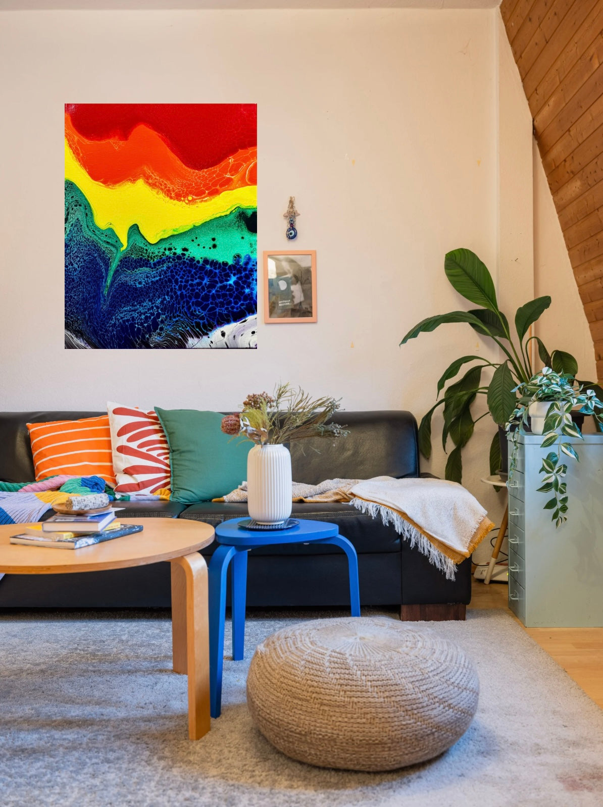 Inspired by Pride, this painting celebrates love, courage, and the beauty of diversity. The vibrant rainbow colors flow and merge, symbolizing fluidity and connection, while the intricate textures reflect the uniqueness of every story. A tribute to authenticity and unity, it radiates the joy and strength at the heart of Pride.